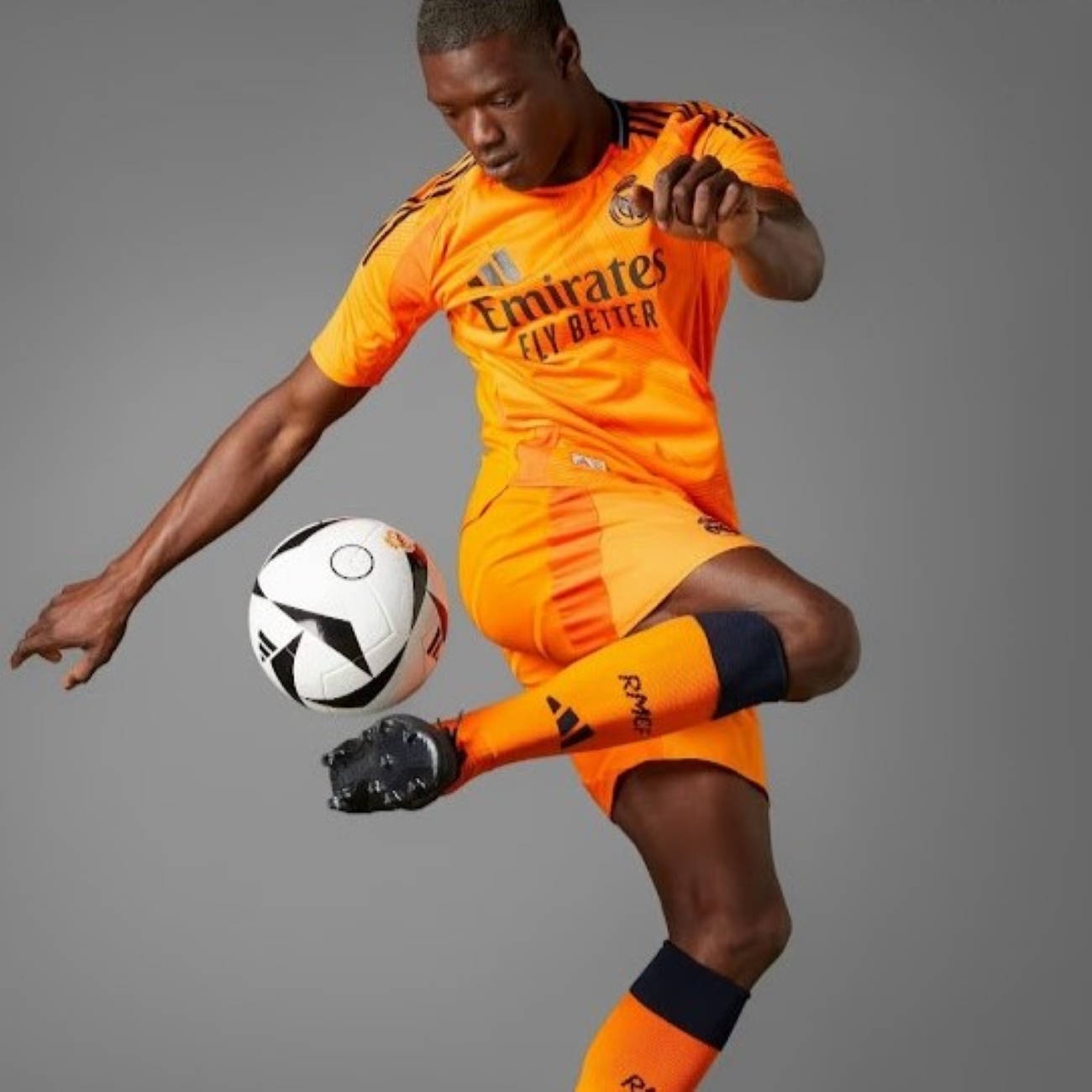 SoccerDealShop offers a vast sort of cheap Real Madrid jerseys, including Real Madrid replica football jerseys and player jerseys, retro jerseys, kits and so on. Here is the newest Real Madrid Away Soccer Jersey 2024/25. Real Madrid jersey is combined with orange color and black, white stripes. The black real madrid embroidered patch on the right chest is always a symbol of real madrid. What’s more, this Real Madrid jersey reminds people of Orange Retro 2013/14 Real Madrid Third Away Soccer Jersey which is available in SoccerDealShop too. Advanced moisture-wicking technology pushes it to the Real Madrid jersey's surface where it can evaporate. The fabrics are also stretchy and cut slim for a streamlined fit that moves with you. So get your hands on this Real Madrid replica football jerseys in your wardrobe now!