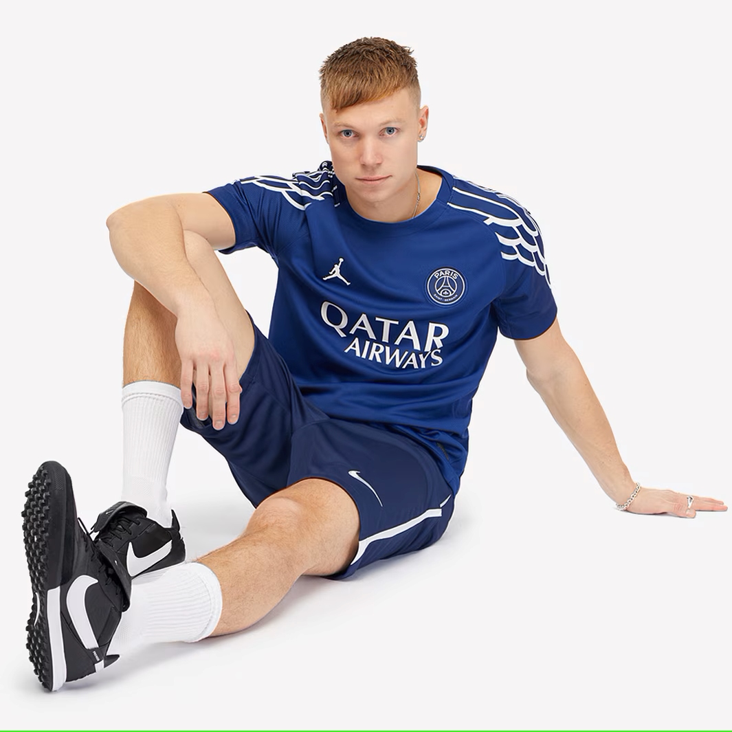 SoccerDeal offers a vast sort of cheap PSG jerseys, including PSG replica football jerseys and player jersey, kits and so on. Here is the PSG Fourth Away Soccer Jersey 2024/25. The PSG jersey comes in a distinctive navy blue colour and features an eye-catching wing design that has caught the eye of people all over the world. The wings of this PSG jersey are inspired by Jordan's iconic ‘wings’ logo, which runs along the shoulders and sleeves of the PSG jersey Fourth Away. This is a short-sleeved version, while the PSG jersey was originally designed as a long-sleeved version. The Jordan Brand logo and PSG crest are adorned on the top of the PSG jersey. What's more, SoccerDeal uses advanced moisture-wicking technology to push the heat from the PSG home kit surface where it can evaporate. The fabrics are also stretchy and cut slim for a streamlined fit that moves with you.
